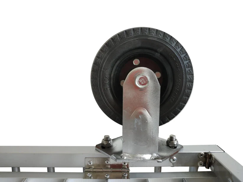 - Weight: 21kg with 4″ nylon wheels, 25kg with 6″ rubber wheels