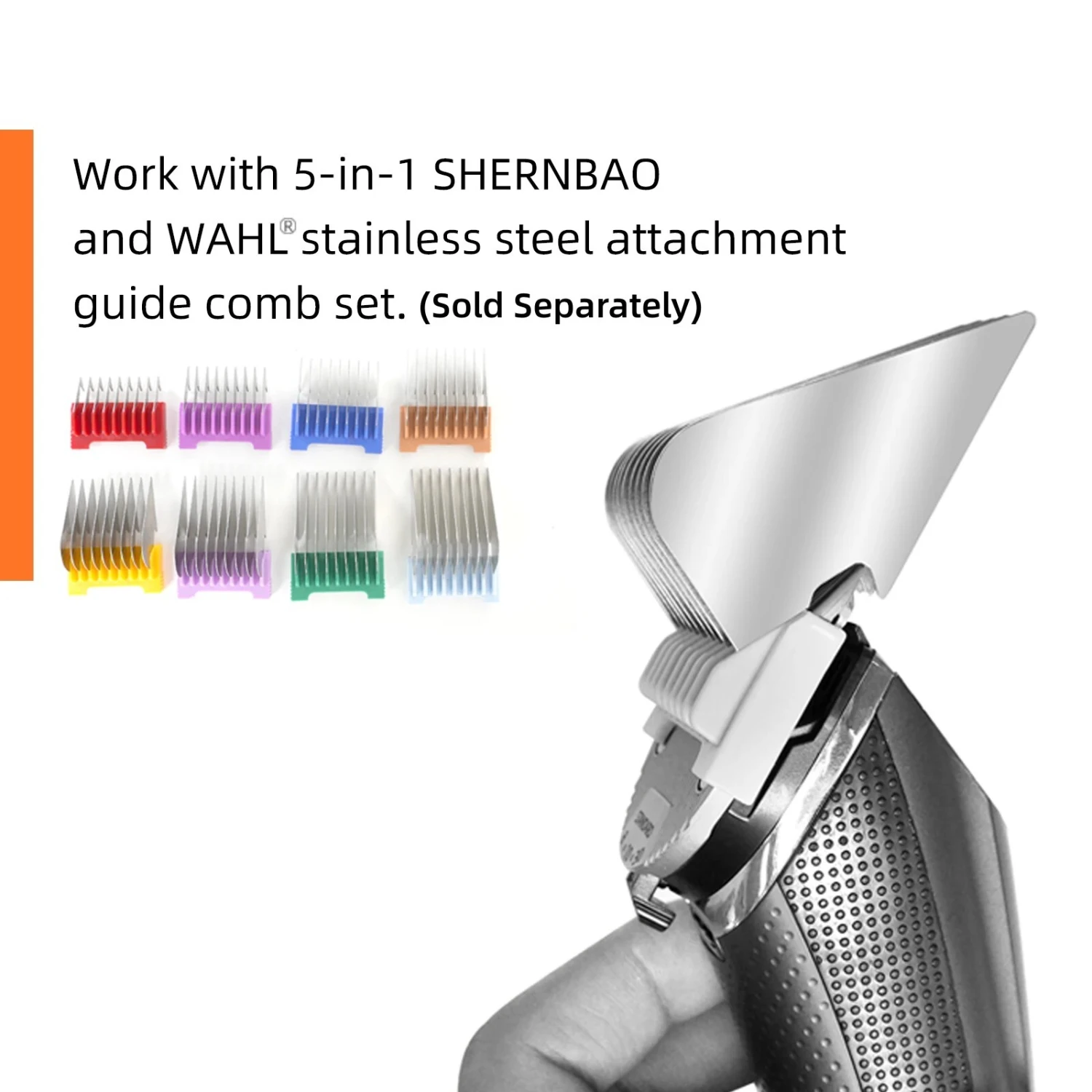 - 5-in-1 Shernbao and Wahl stainless steel attachment combs