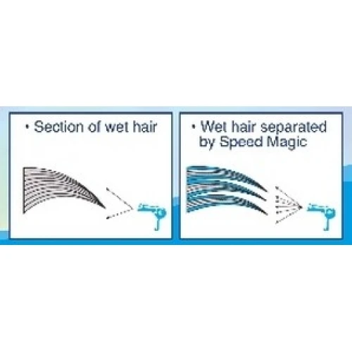 - Shortens drying time by up to 30% by separating wet hair that groups together.